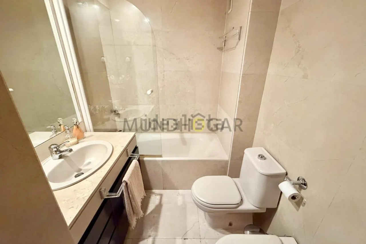 - Dos baños completos con encimera de mármol, uno de ellos en suite con bañera, y aseo.