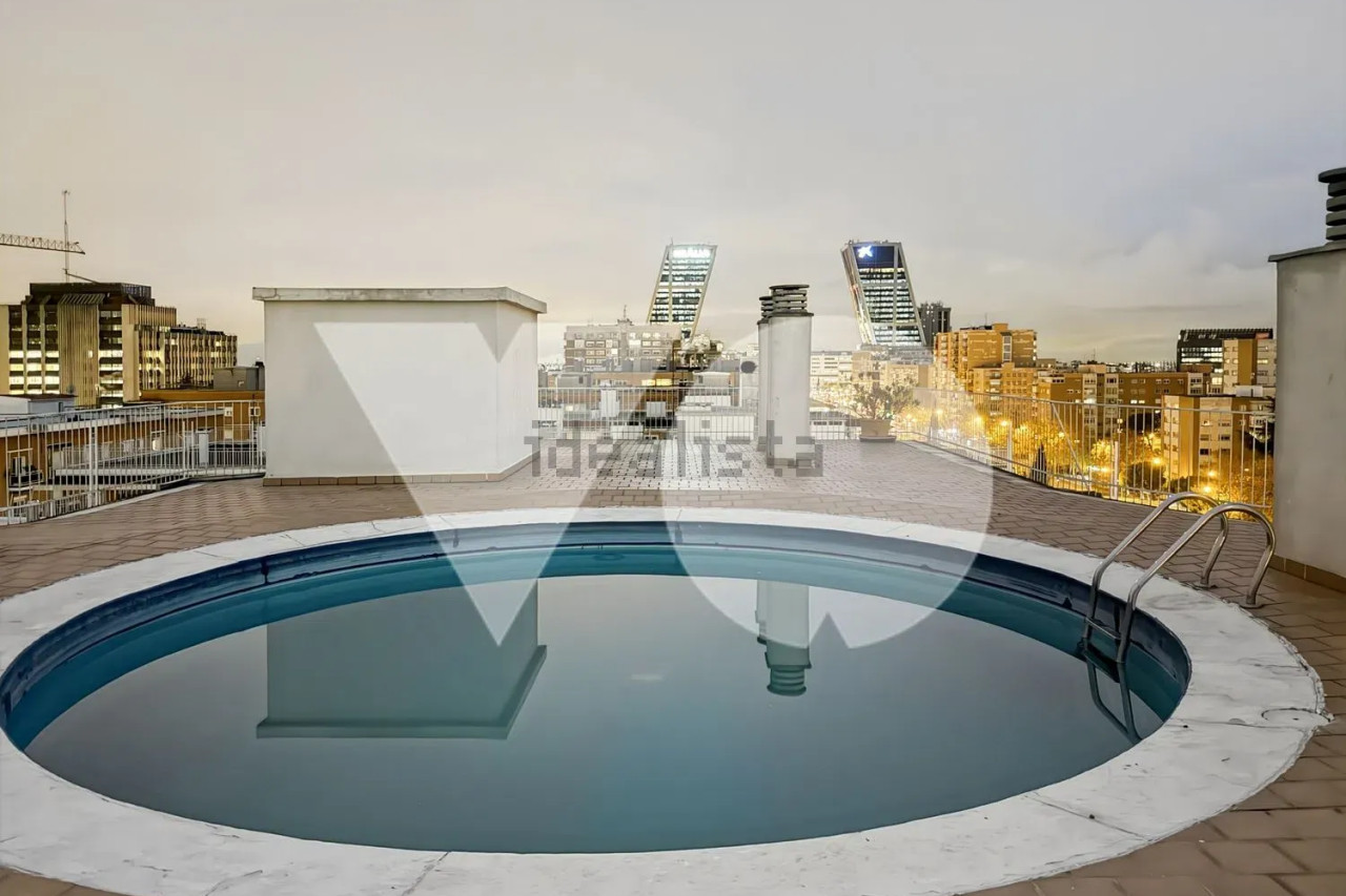 La finca dispone de portero físico con cámaras de vigilancia 24 horas, videoportero, dos ascensores por escalera, y a destacar, la piscina ubicada en la azotea y la gran terraza panorámica de uso comunitario con impresionantes vistas a la ciudad de Madrid.