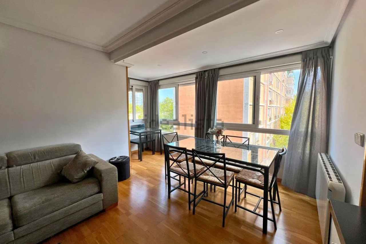 Redfrin vende piso luminoso en pleno Paseo de la Castellana – Chamartín.La vivienda se distribuye en un amplio salón-comedor, bañado por la luz natural que proporcionan sus grandes ventanales. La cocina, amueblada y práctica, se integra con el salón mediante una barra americana, aportando una mayor sensación de amplitud.