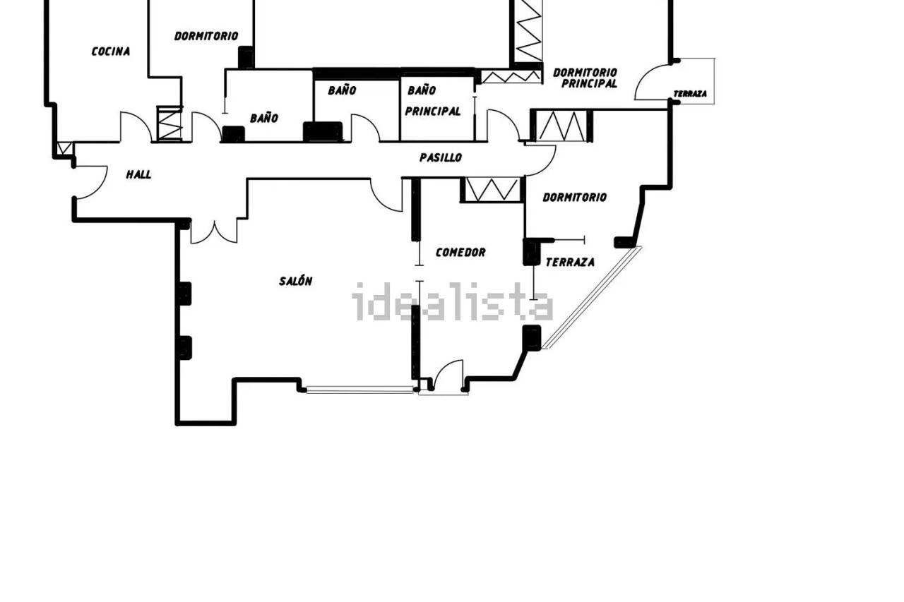 Se distribuye en: hall amplio, salón y comedor en dos ambientes diferentes pero comunicados entre sí, 4 dormitorios (el principal y otro con baño incorporado. Actualmente un dormitorio se transformó en comedor con posibilidad de volver a ser dormitorio ), 3 baños, pasillo distribuidor, cocina amueblada y terraza.