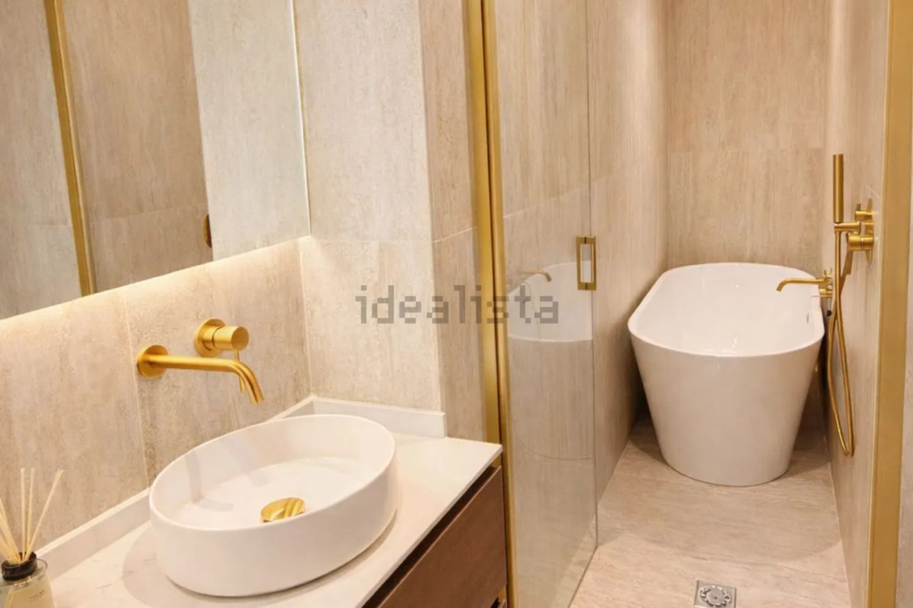 • Baños modernos con muebles suspendidos, encimeras SILESTONE by Cosentino, espejos retroiluminados LED y bañera con Smart TV.